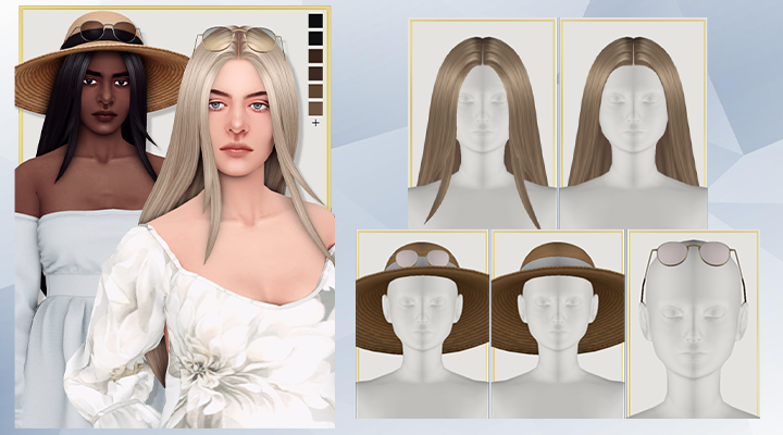 Невеличкий набір, який складається з зачіски, капелюшка та сонцезахисних окулярів.