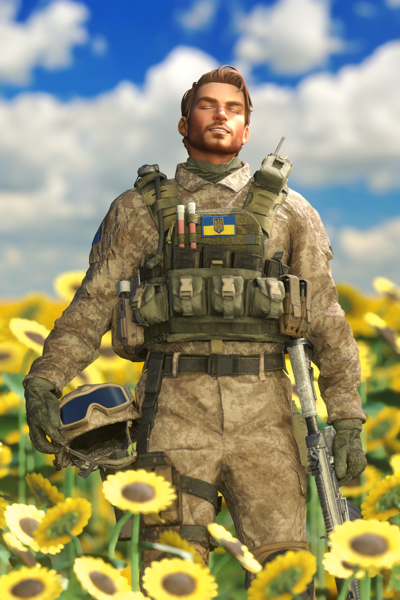 *-* як гарно боже, це виглядає неймовірно 😍 цей пейзаж, ці соняхи 💛 віє миром і спокоєм... хай всі захисники вертаються живими і мають такі ж посмішки 💔