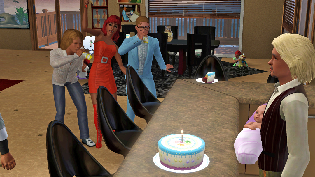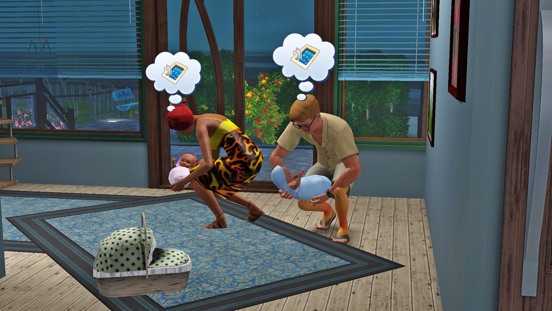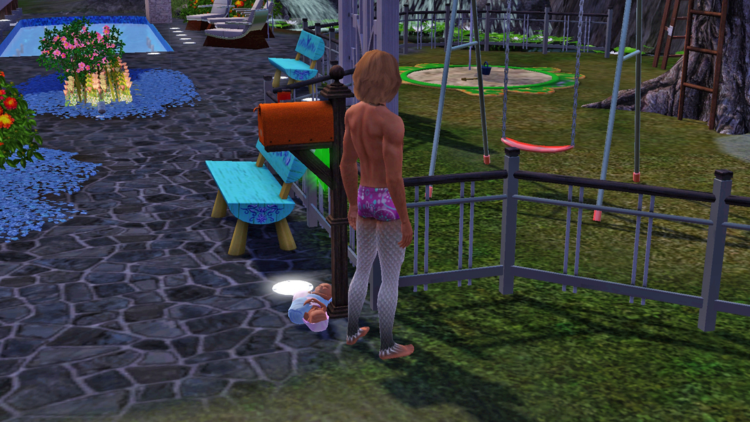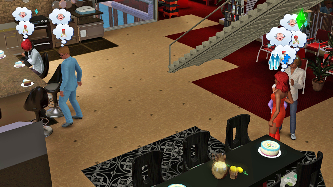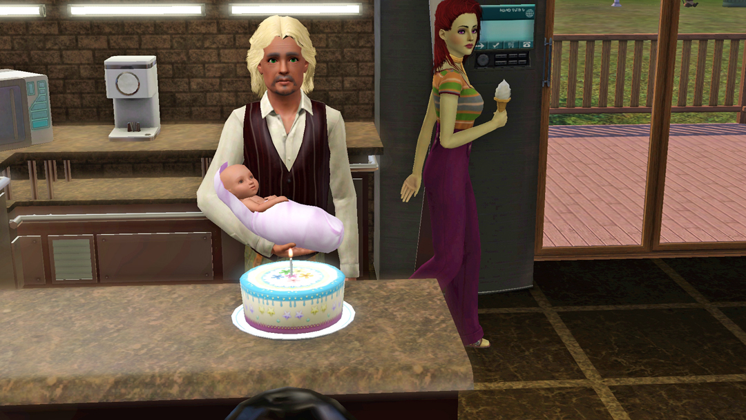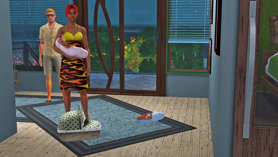 От, за що не люблю кар'єру медицини в сімс. Лікарів вічно дьоргають. Де б вони не були, чим би не займались, в будь-який момент їх можуть викликати на роботу. Так і сталось цього разу, Космосу неочікувано подзвонили, сповістили, що він терміново потрібний в лікарні. Що ж, прийшлось їхати. За одно, Космос телепортнувся додому, але не до того, що треба. При чому, разам з трійнятами. Єх, а я хотіла зберегти два будинки жилі локації і щоб Марк залишився в старому будинку, а молодь переїхала в новий. Що ж, прийшлось повністю туди переїхати.