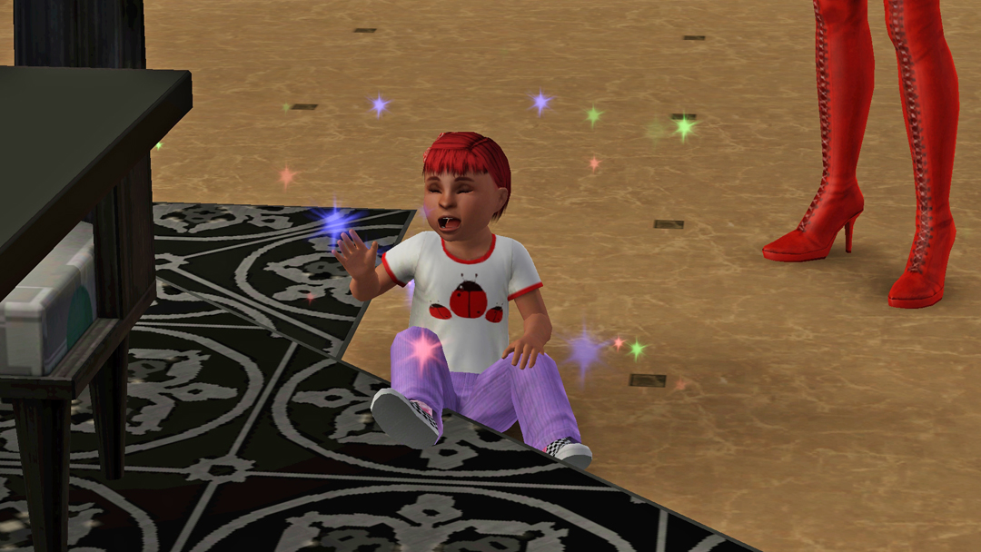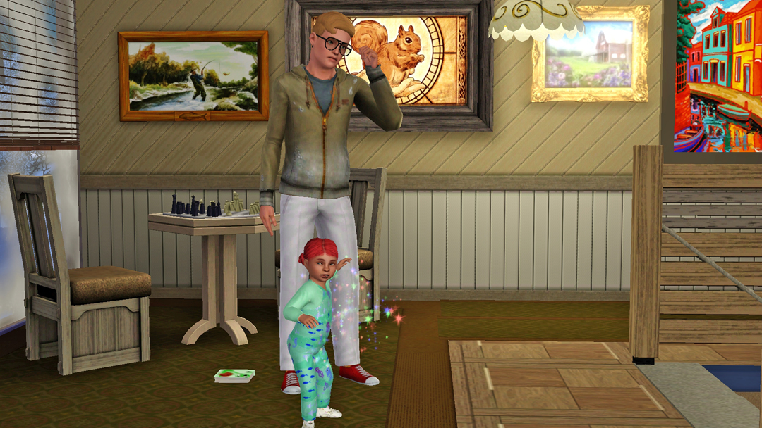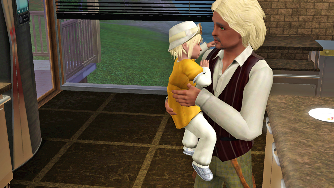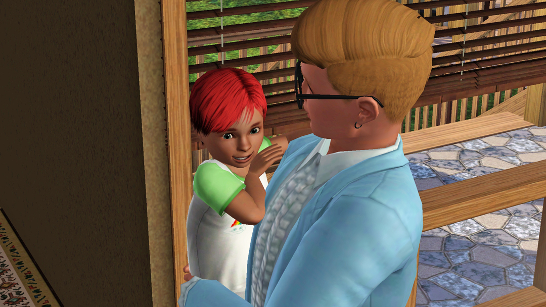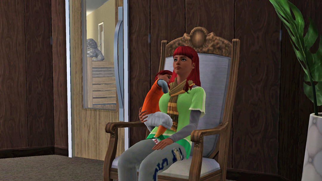 А от Нео, вже зовсім вигорів. Стоїть з малим, капризним Есфіром, який ніяк не вкладеться спати і прийшлось пів ночі носити його на руках. Пригортаючи сина до себе, Нео знову ловить себе на думці, що сердиться на Есфіра та подумки на нього кричить, "О святий сімс! Та коли ти вже заснеш?!"))