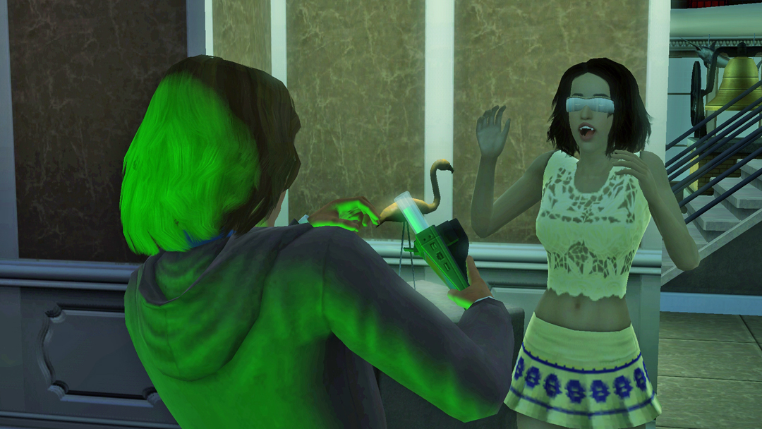Сіми потрохи освоюються на новому місці. Тим часом, наступило свято літа і Чесстери захотіли влаштувати свято біля басейну. Що ж, захотіли, то ж треба б виконати. То ж було прийнято рішення влаштувати вечірку біля міського басейну. Гості почали сходитись, тим часом Омега з Нео чекали на няньку, яка мала посидіти з дітьми.